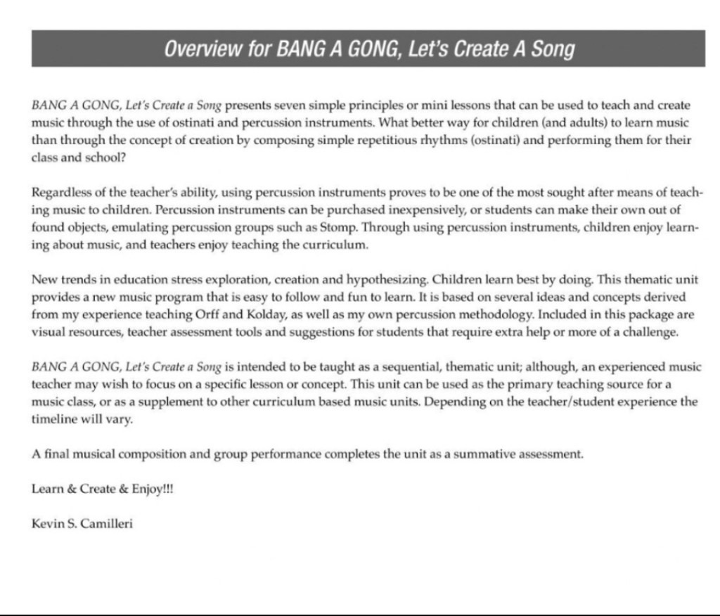 Introducing the re-release of Bang a Gong, Let’s Create a Song by Kevin Camilleri! Widely used across multiple school boards in Canada, including extensive adoption in Nova Scotia, the resource is also proudly featured on the curriculum approval list for New York State, USA.