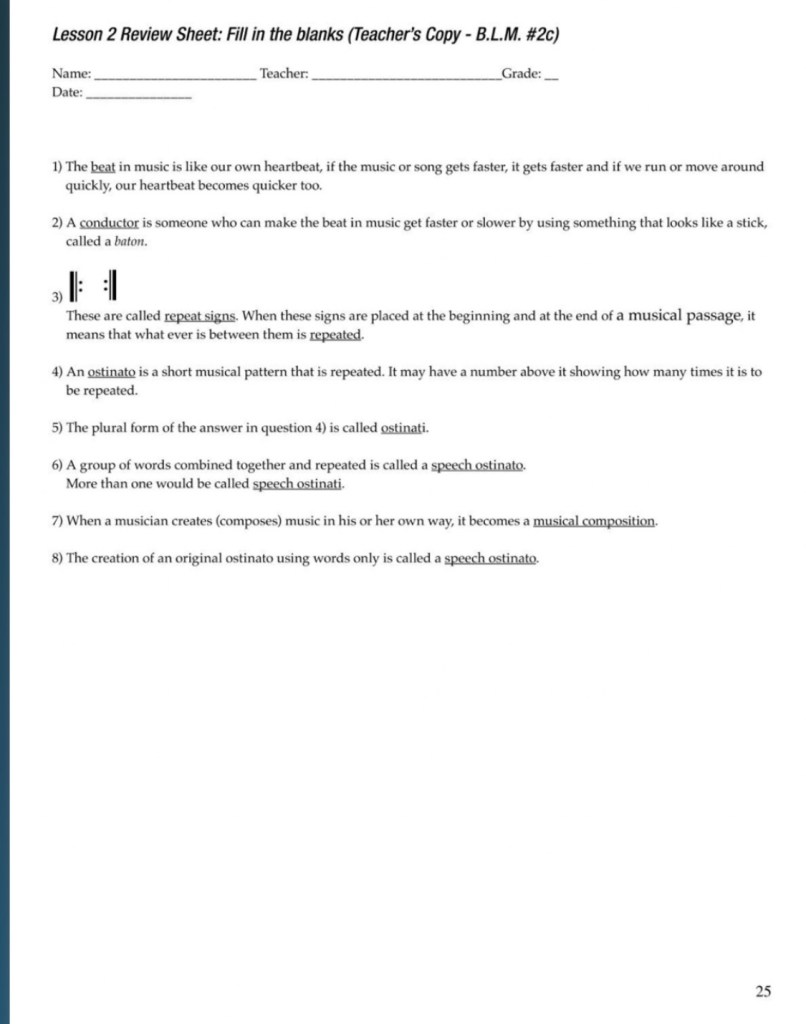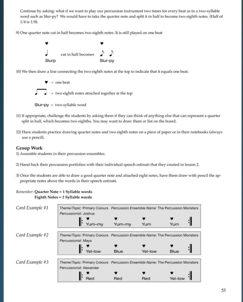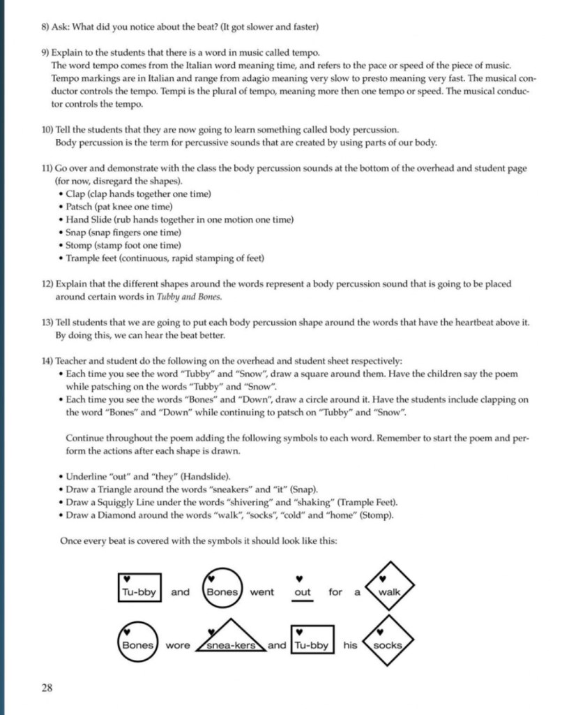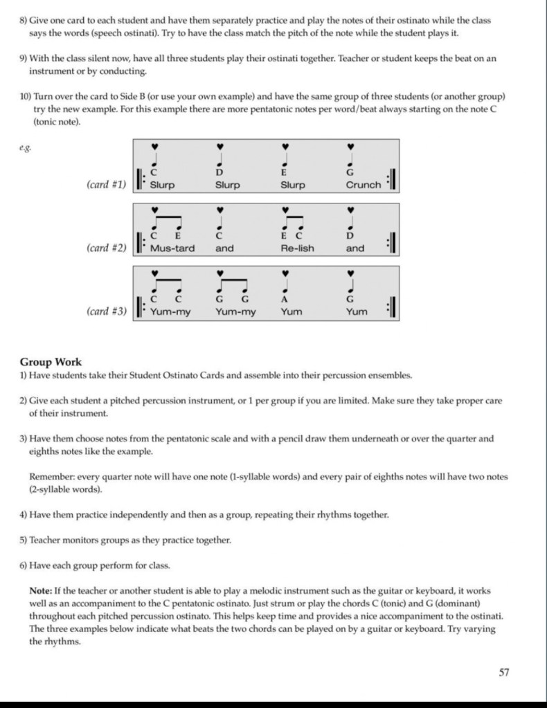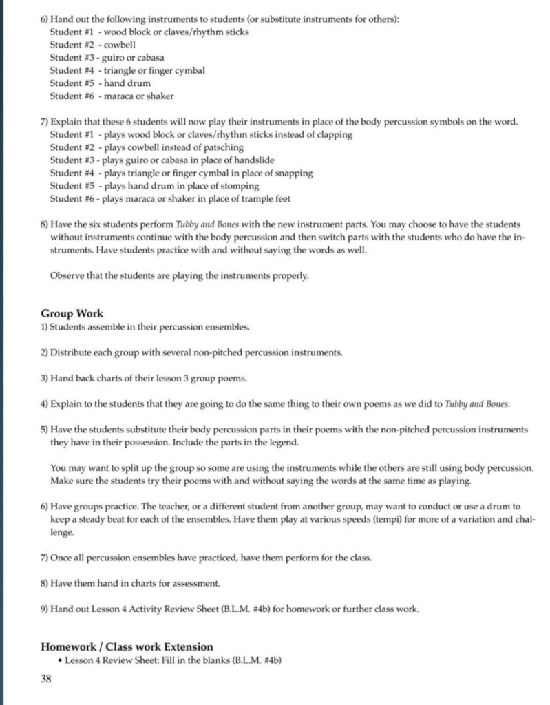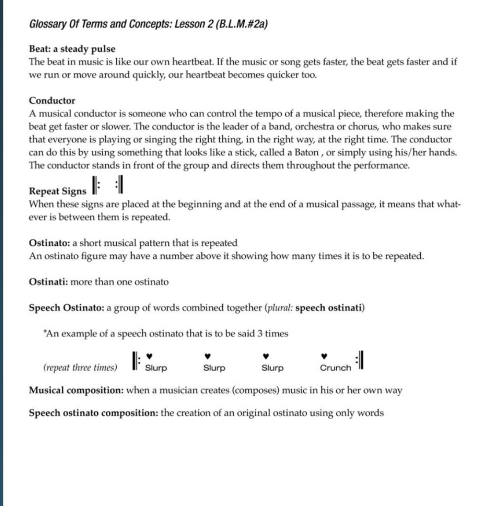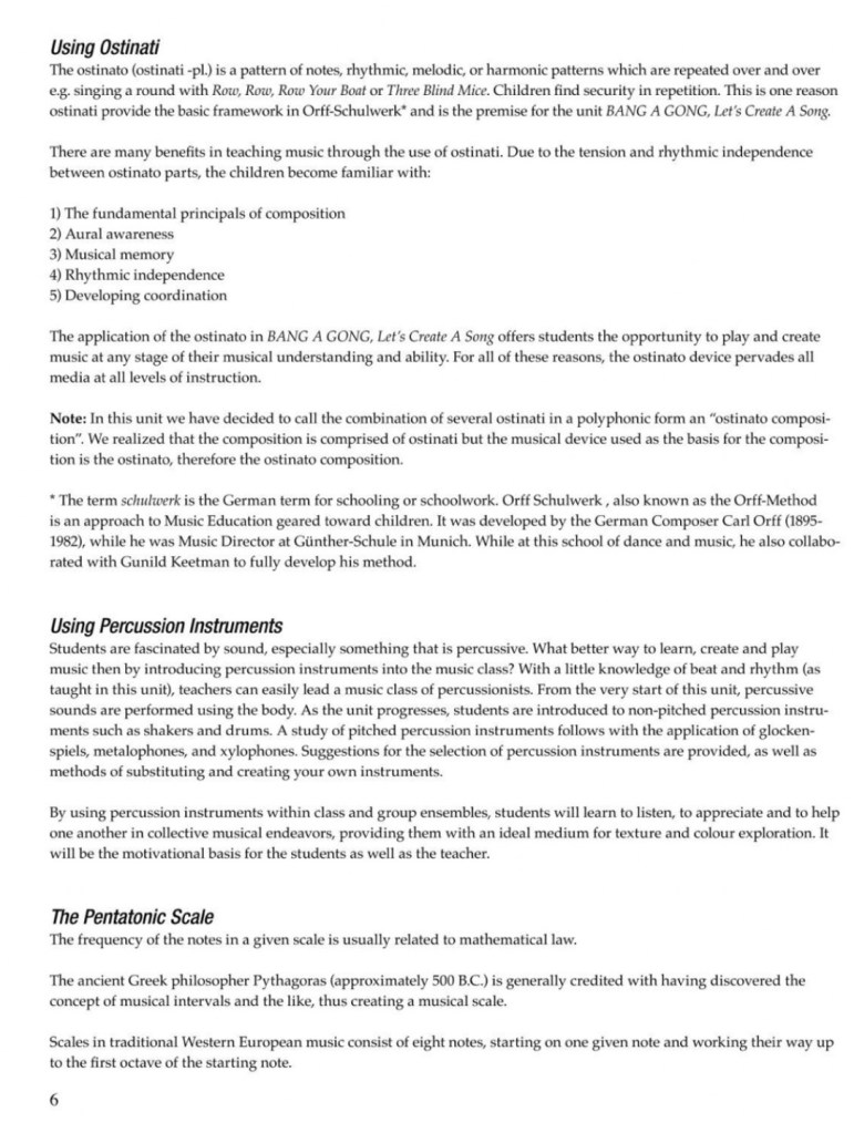 The following pages are taken from Bang a Gong, let’s Create a Song: They are not consecutive pages but selections to give the viewer an idea of the progression of the program and quality of the material.
